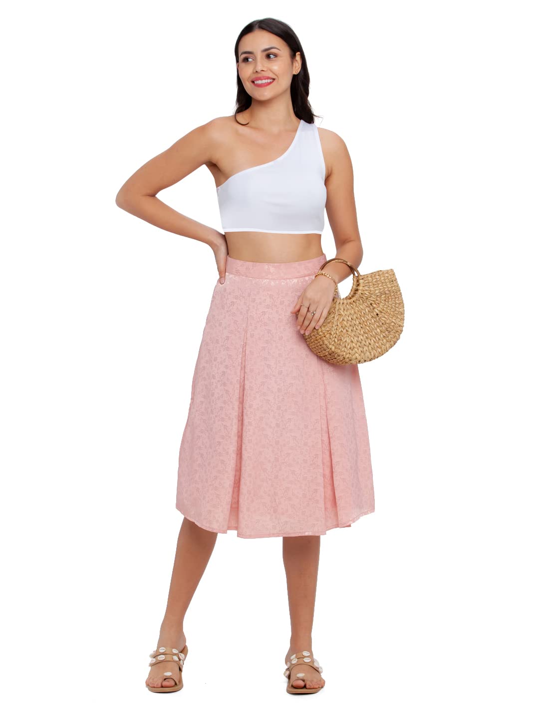 Zink London Women's Pink Printed Flared Skirt