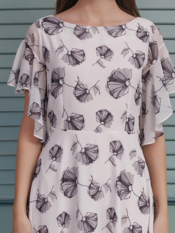 Zink London Women's White Printed Flared Maxi Dress