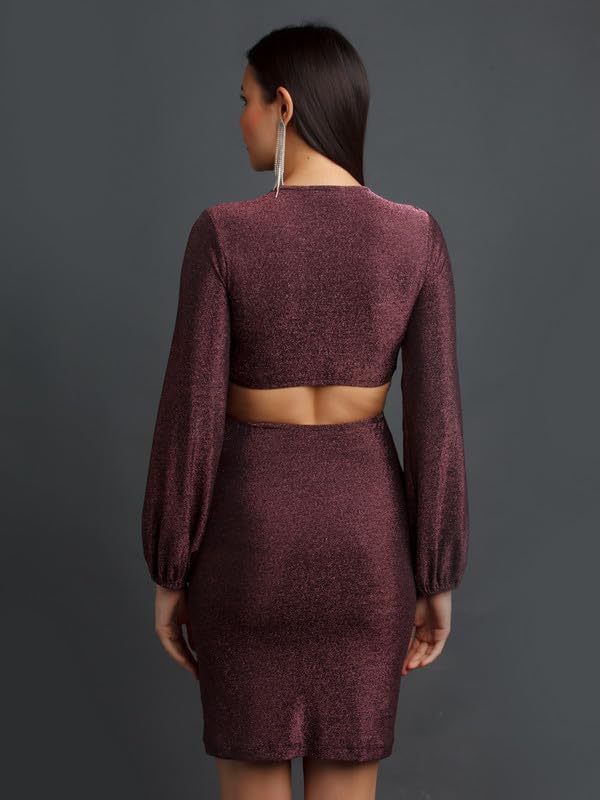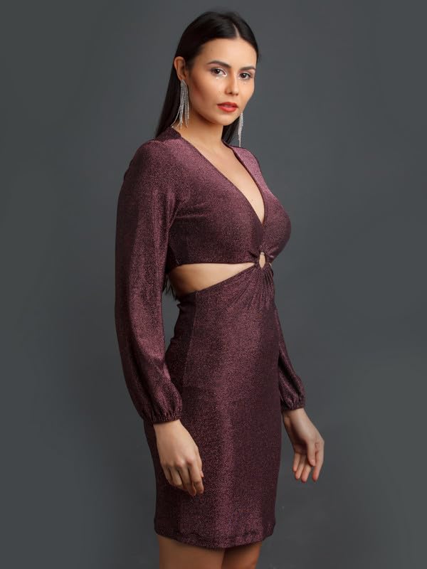 Zink Z Women's Brown Shimmer Fitted Short Dress