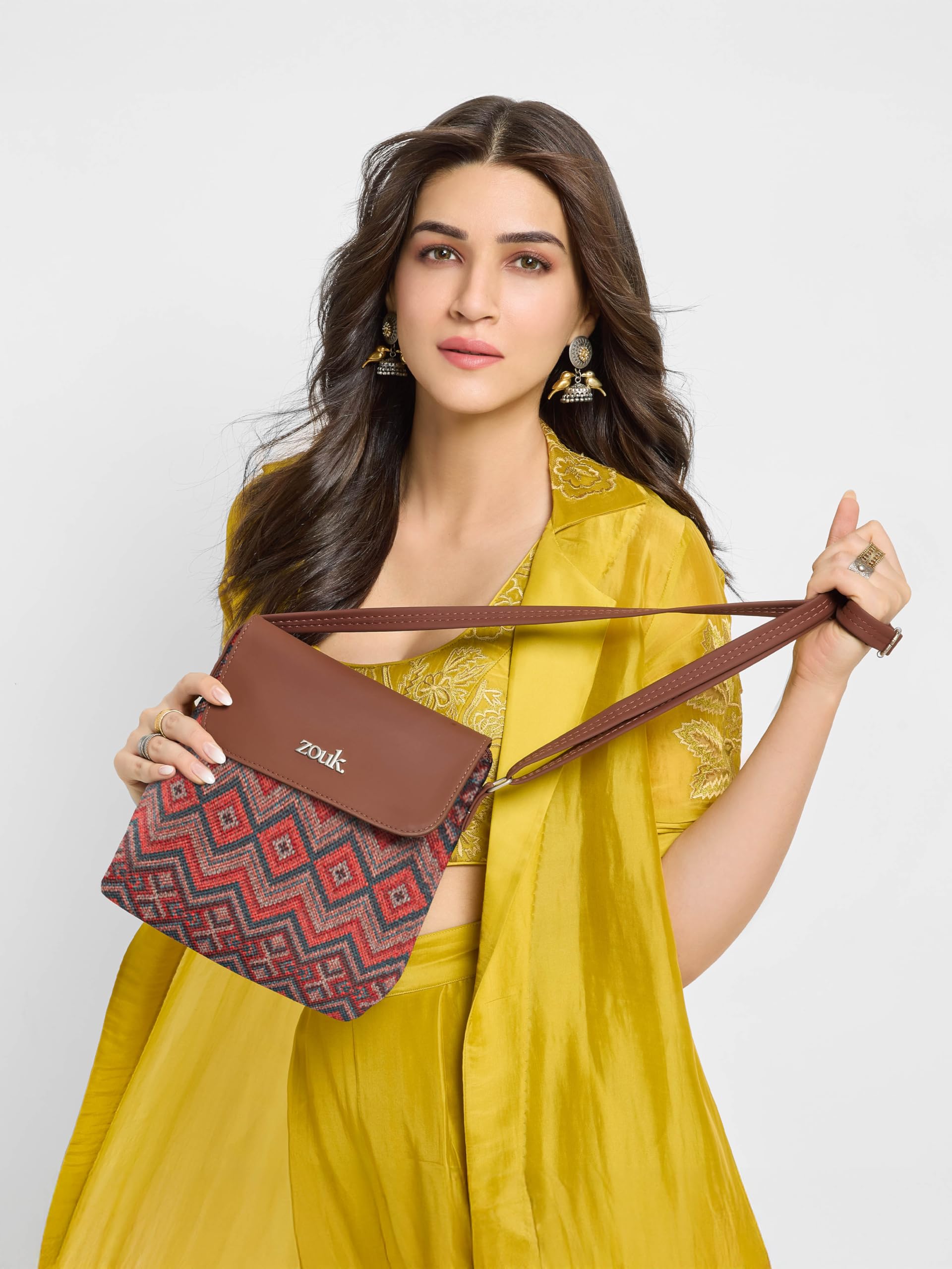 ZOUK Flap Sling Bag | Crossbody Bags for Women | Women's Handbags | Stylish | Vegan Leather Evening Bag | Travel & Office Use | Purse and Wallet | Gwalior Weaves Print