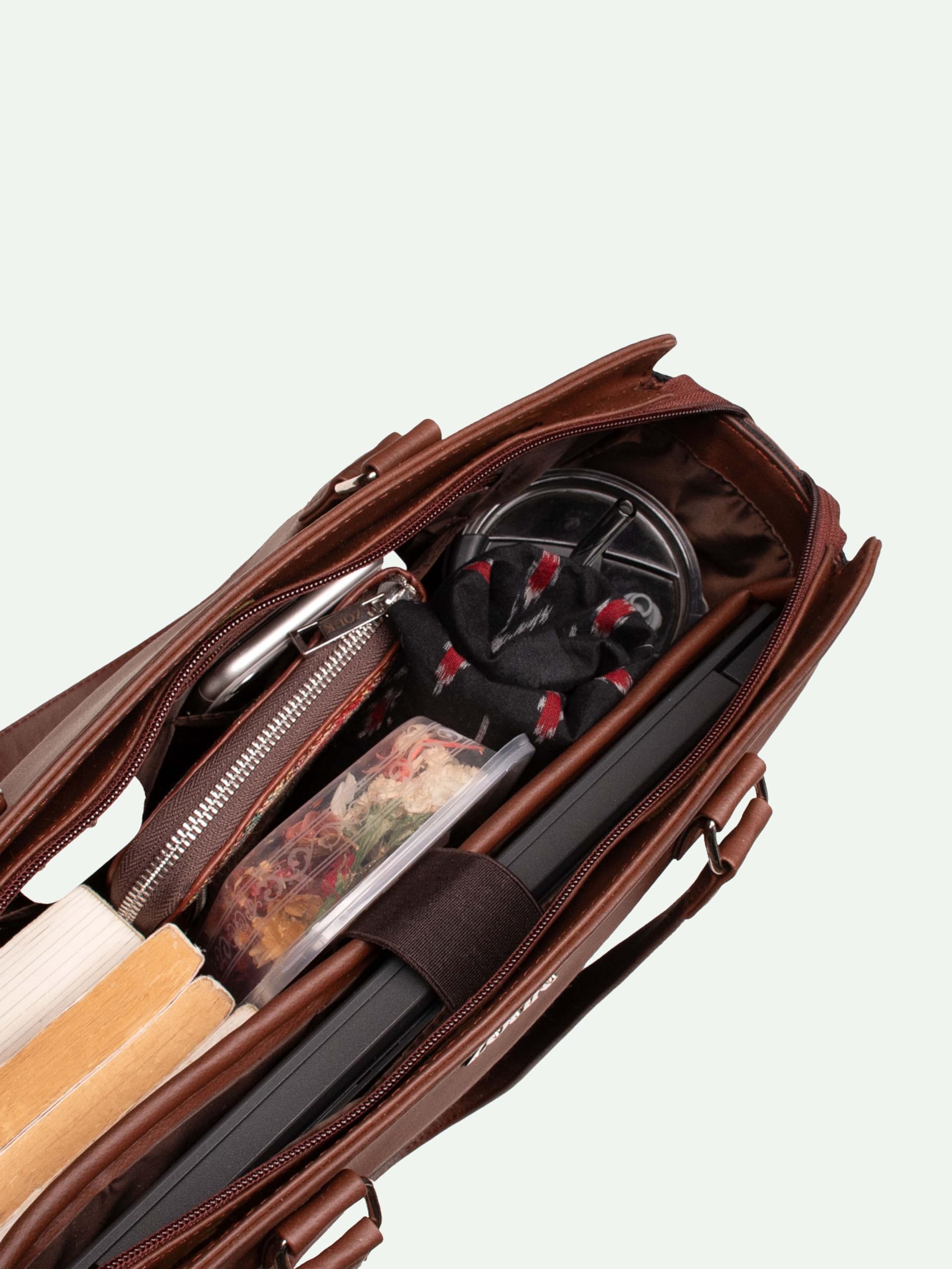 - Versatile and Practical: Ideal for office use, work travel, and daily activities. Can accommodate a 14’’ laptop, a water bottle, small tiffin, iPad or tablet, diary, small umbrella, and more. Dimensions: 38 x 30 x 13 cms (approx).
