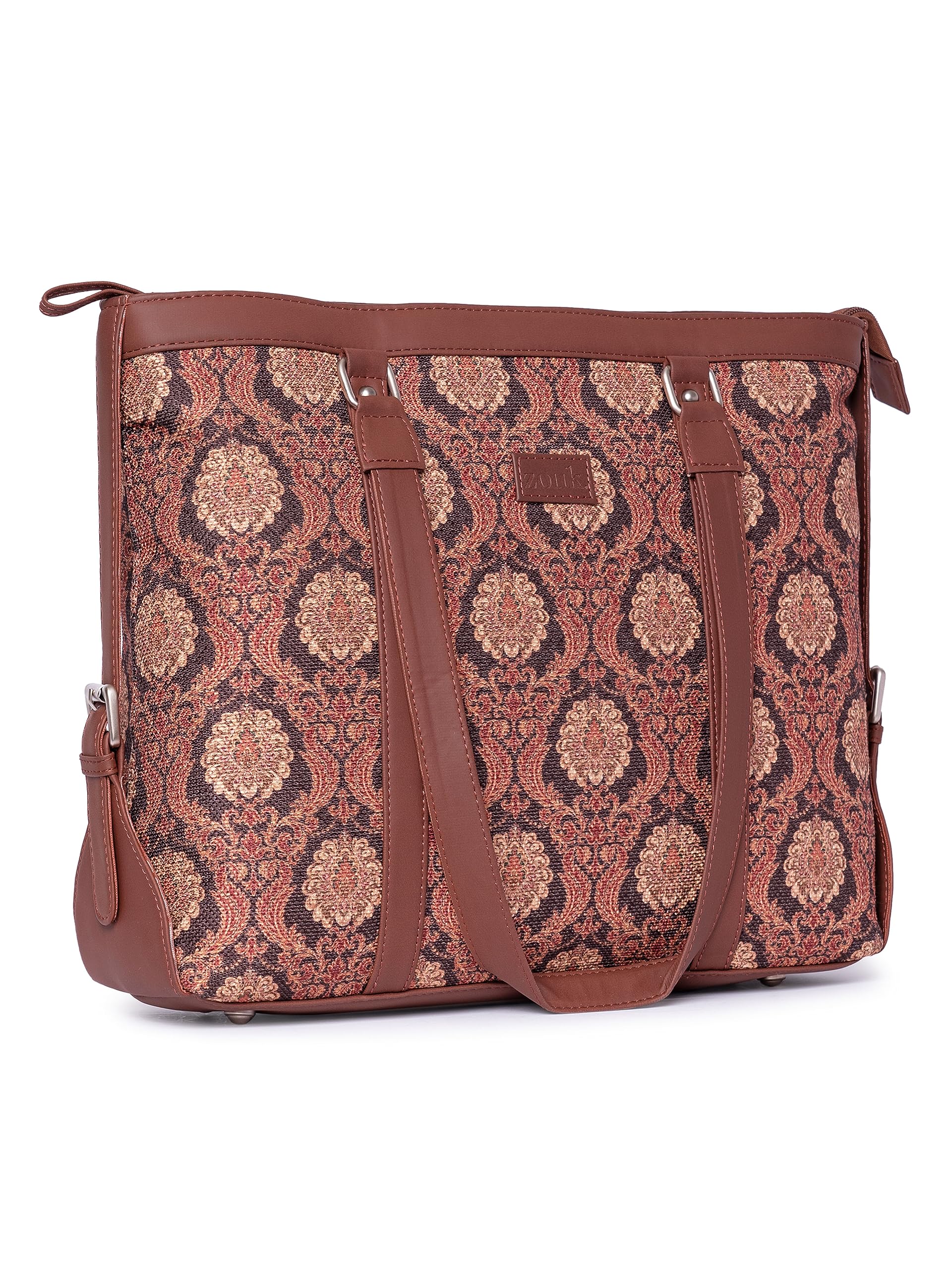 ZOUK Office Bag | Stylish Bags for Office Use | Laptop Bag 15.6 inch | Stylish Tote for Office Use | Purse for Women | Vegan Leather Handbag | Daily & Travel Use | Jodhpur Damask