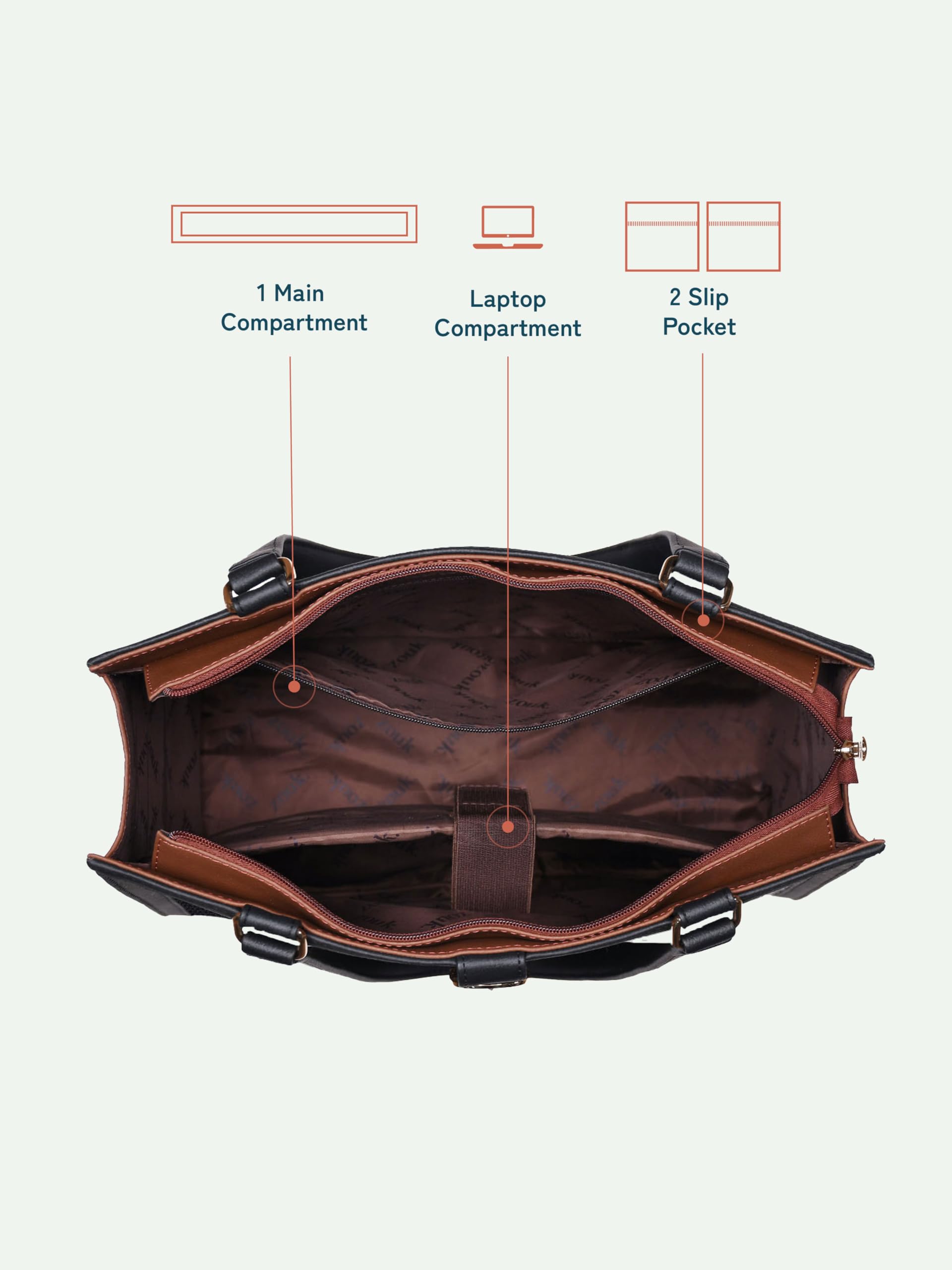 - Spacious & Organized – Large main compartment with built-in slip pockets and a zippered interior pocket for effortless organization.