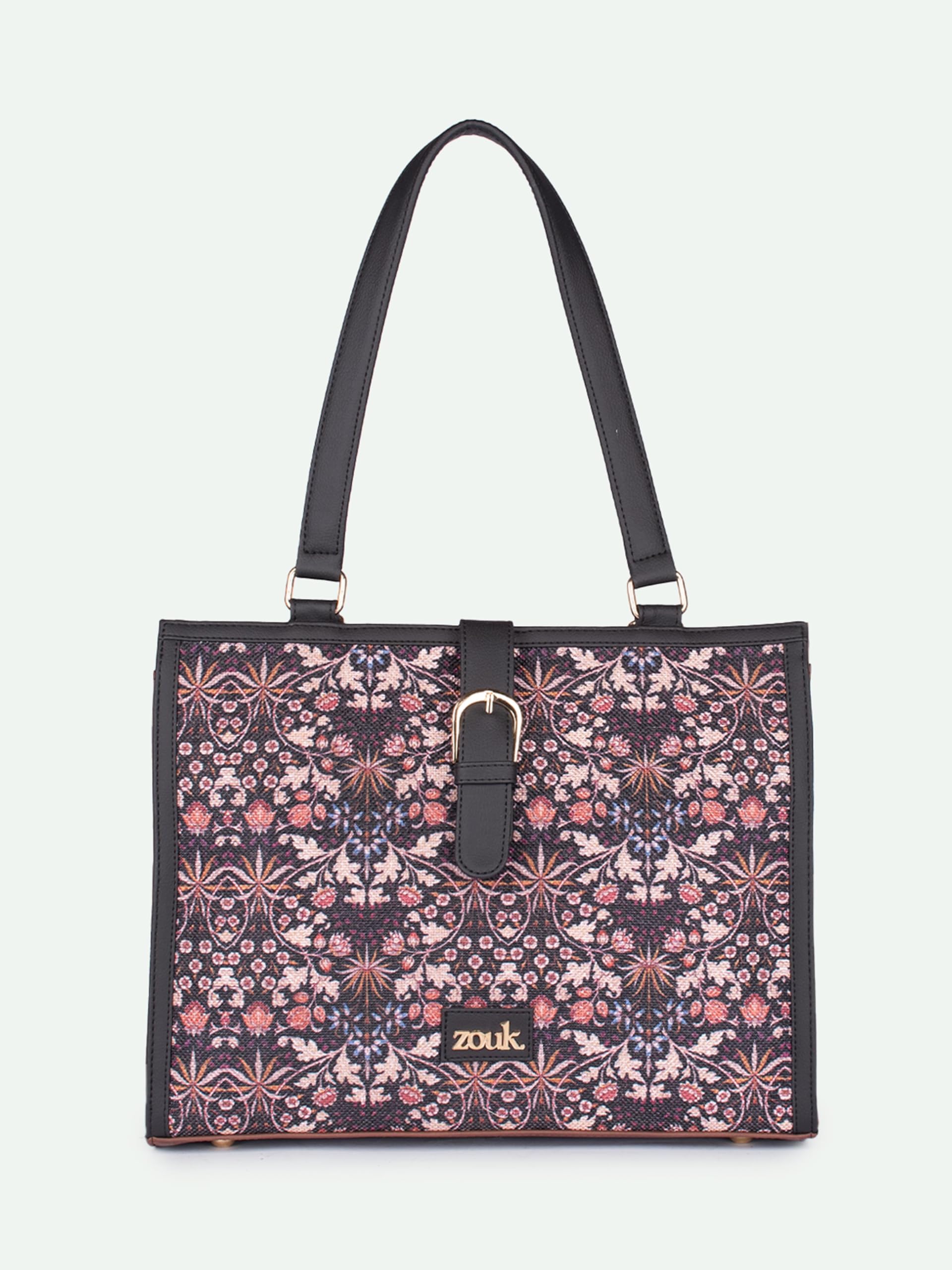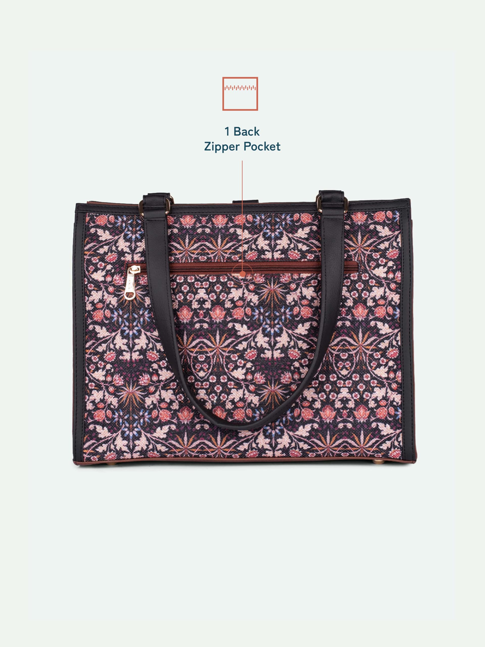 ZOUK Rhea Kapoor Office Bag - Kashmir Blooms | Stylish & Spacious Laptop Tote for Women | Vegan Leather Work Bag