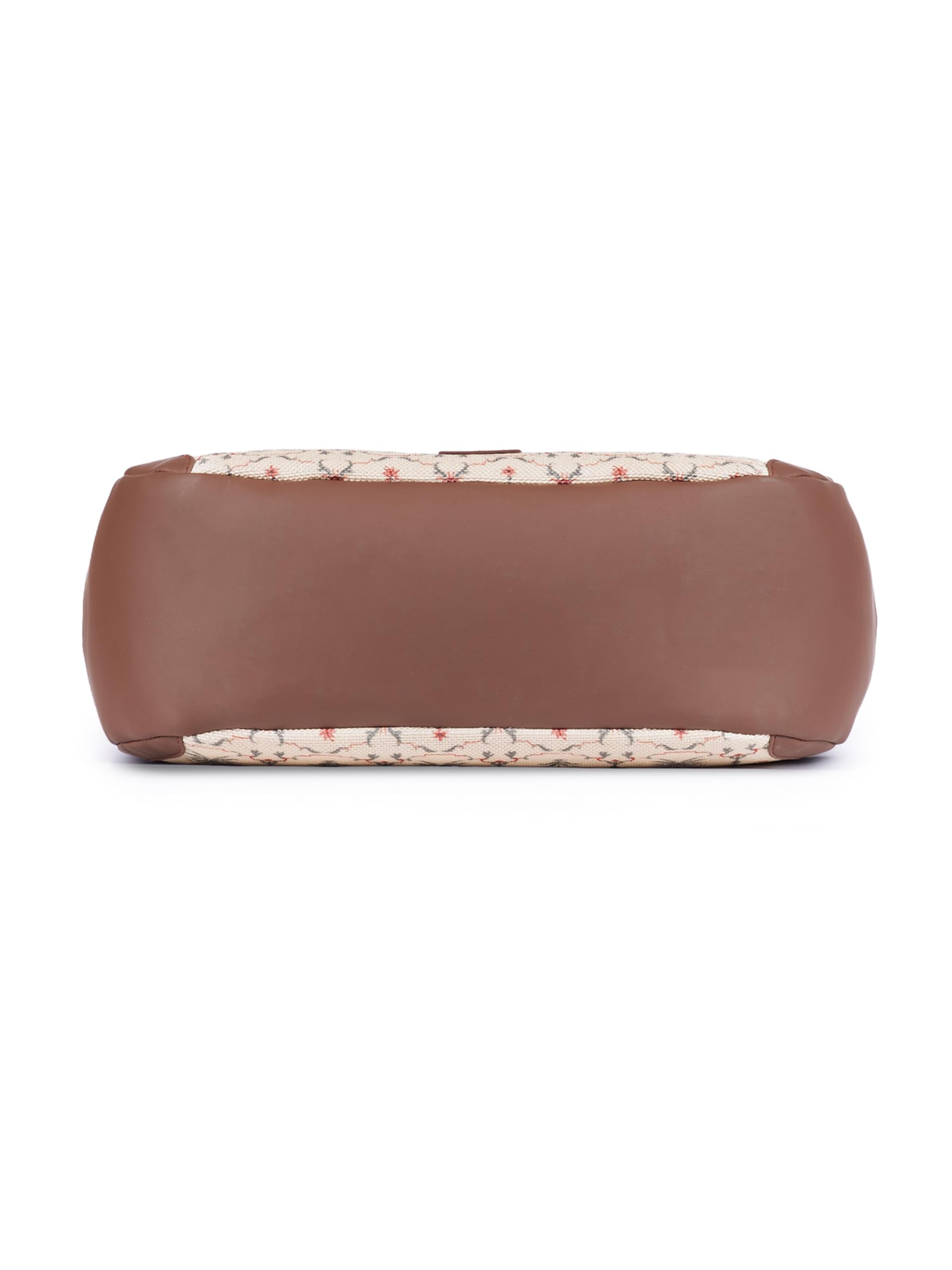 ZOUK Taj Nakashi Floral Printed Jute Handcrafted Vegan Leather Lemon Yellow Women's Shoulder Luna Handbags | Ladies Purse Handbag